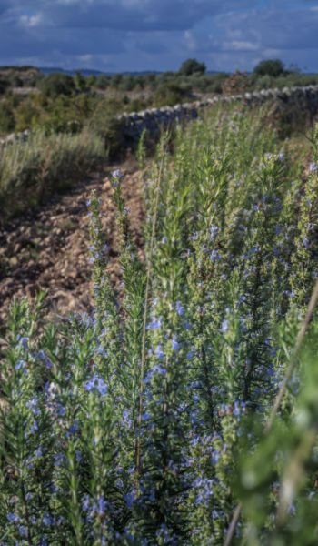 Siamo a Contrada Fondi Vecchi, nel comune di Palazzolo Acreide, sui Monti Iblei a 600 metri sul livello del mare, a pochi chilometri da Siracusa. Un territorio ricco di storia — sede di ritrovamenti archeologici di epoca bizantina — e circondato da melograni, ulivi, piante di noci ed essenze mediterranee. Lo sguardo si perde in un orizzonte lontano: la sensazione è quella di essere in un luogo sospeso, fuori dal tempo.